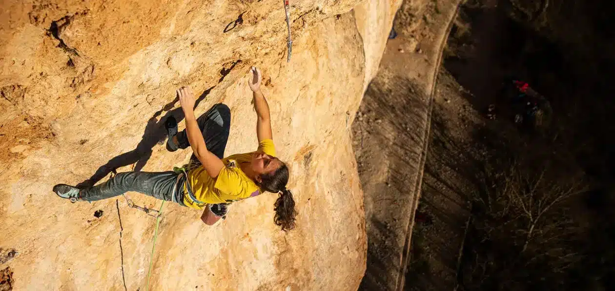 Sin embargo, Ana Belén siempre ha tenido claro que la escalada en roca es lo que más le gustaba. Cuenca es la escuela donde más tiempo le ha dedicado y ha sido muy importante para su crecimiento como escaladora. Allí Ana ha encadenado desde su primer 8b hasta su primer 9a con Cordia Maleficarum (FFA) en 2022 y ya tiene en su repertorio más de una veintena de vías entre 8c y 9a.