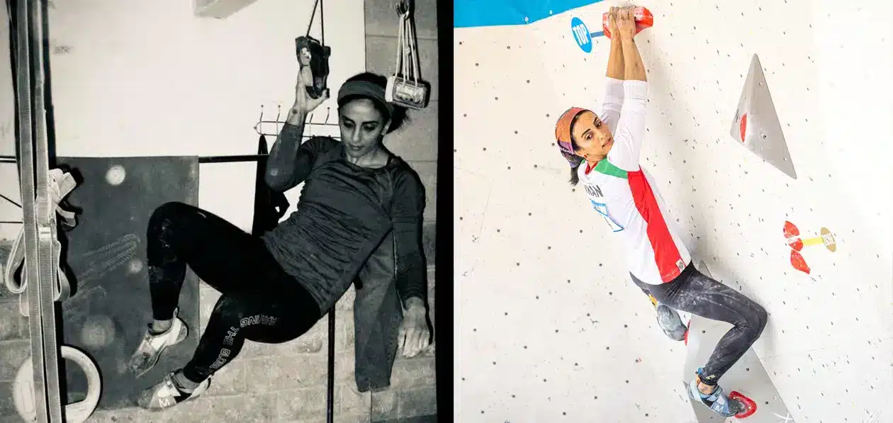 Elnaz Rebaki, nacida en 1989 en Teherán, ha dedicado su vida a la escalada. Es una escaladora pionera de referencia en Irán, no sólo por sus logros deportivos, sino también por su constante contribución al desarrollo de la escalada y a la formación de jóvenes promesas. Paralelamente a su propio entrenamiento, Elnaz trabaja como entrenadora de escalada en diferentes niveles y grupos de edad. Entre 2015 y 2016 fue entrenadora de los equipos nacionales juvenil y junior de escalada deportiva de Irán. Ahora entrena a más de 50 escaladores en un pequeño gimnasio de escalada que ella misma creó y diseñó en Teherán.