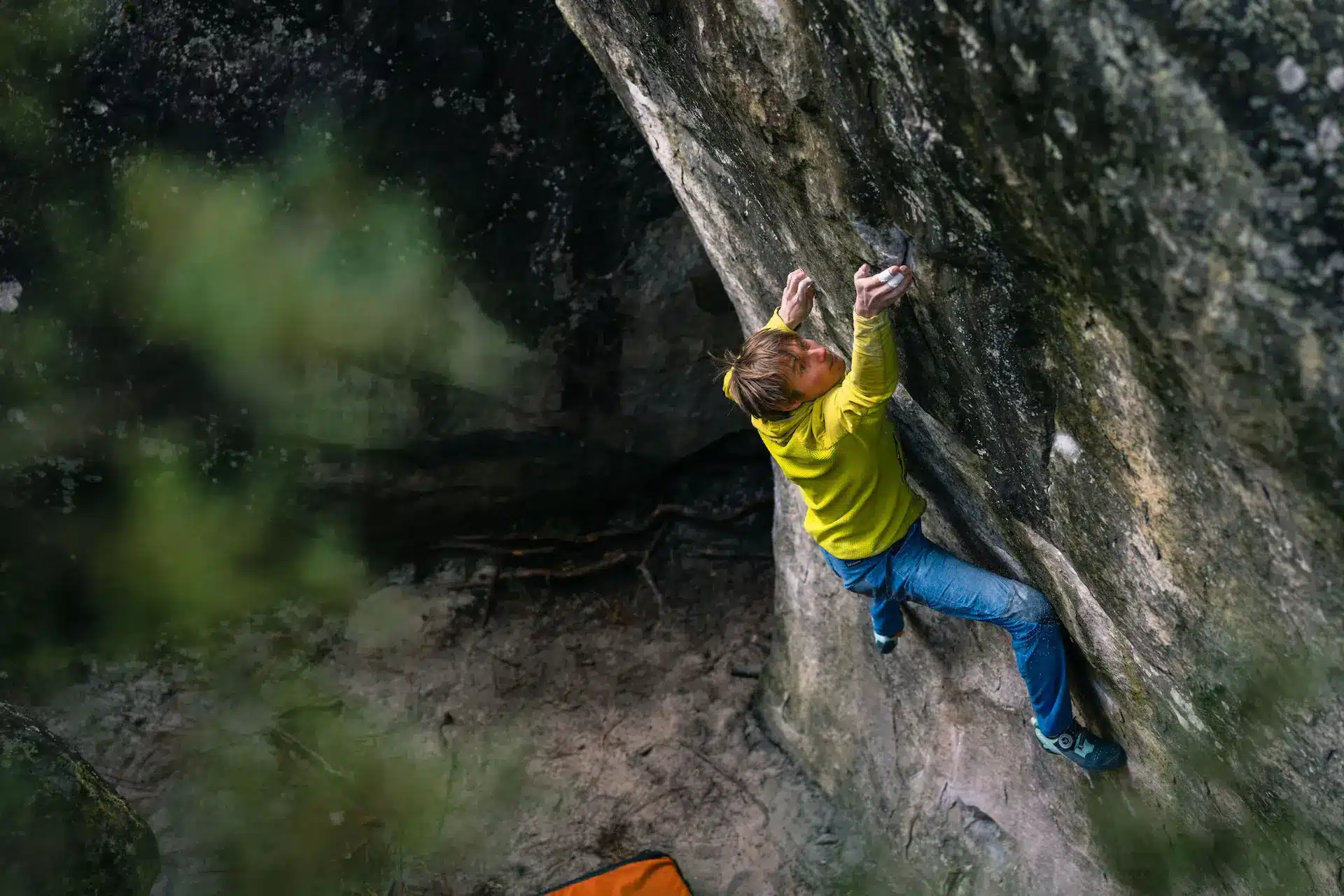 - Two-part sole improves the shoe’s ability to adapt to the shape of the rock.