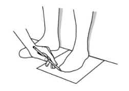 Sitúa el pie en el suelo sobre un papel como en el dibujo.