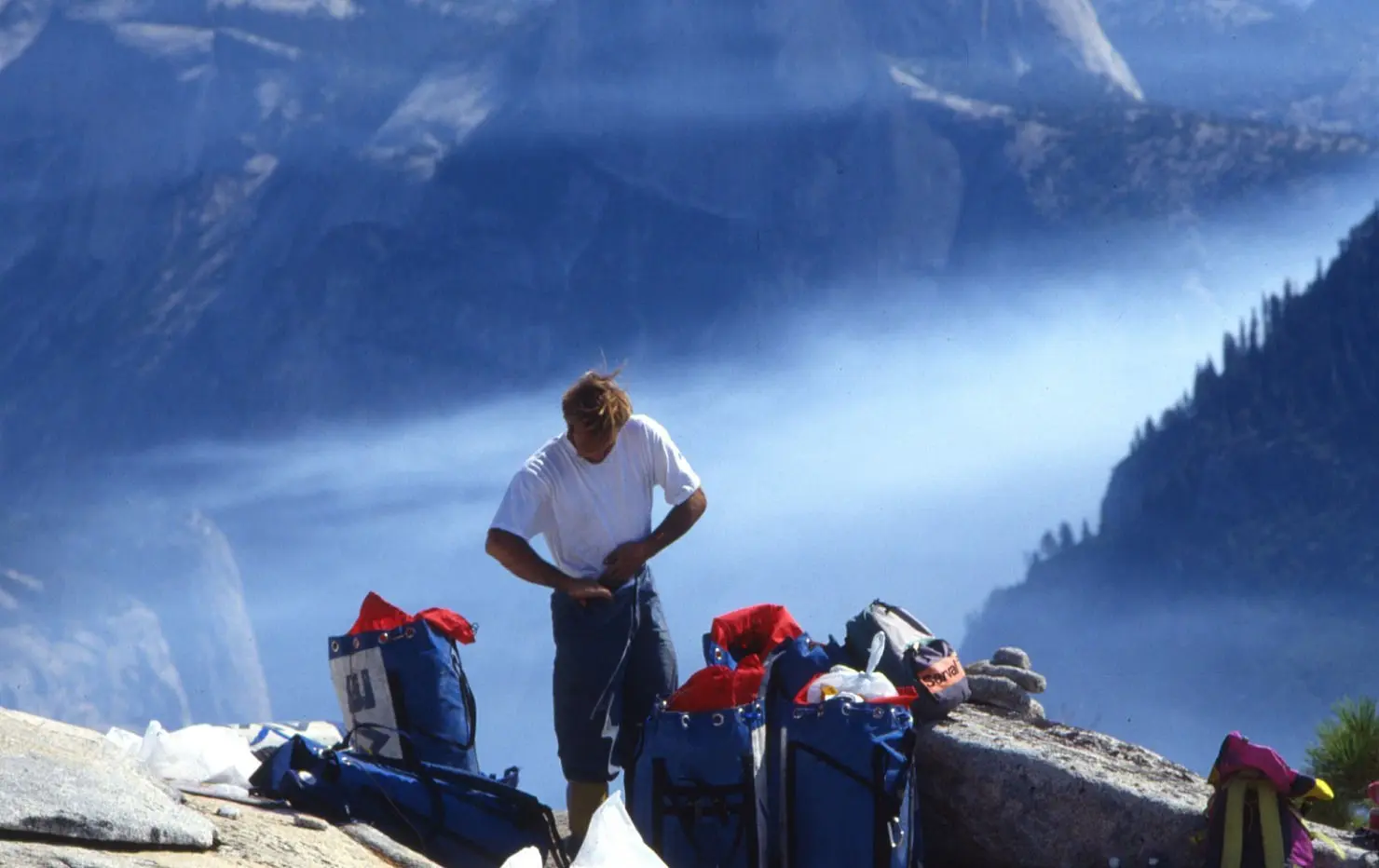 Jose Luis Garcia Gallego fundador de Tenaya en la cumbre del Capitán después de abrir su cuarta nueva ruta sobre la montaña.