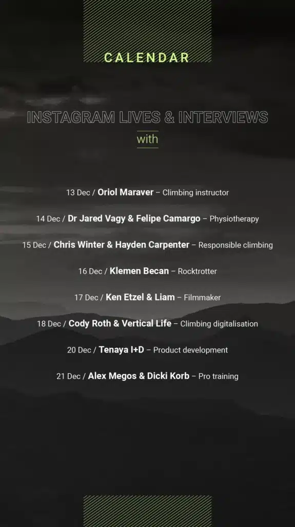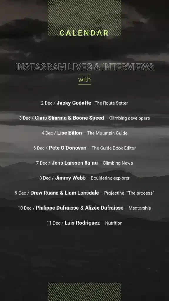 This December we are sharing the stories of the people and professionals behind the send. We invite you to follow us on social media for blog posts, videos, and live interviews from the many different and often under-appreciated pillars of the community who make the climbing life possible.