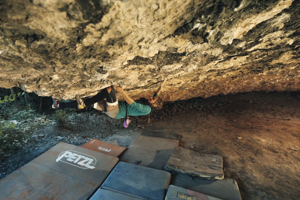 In a normal year when the world isn’t chaotic, I usually boulder during the summer to work on my weaknesses. I seek problems that are more slopey than crimpy, or I hone my technique with specific projects. Two years ago I projected Wheel of Retardation (8B/V13) in Rocklands, South Africa to improve my knee-bar skills. Last year I pushed myself to get better at toe-hooking—something I really have trouble feeling—on Ray of light (8B/V13) and Spray of Light (8C/V15) in Rocklands. When I returned to sport climbing in the fall, it was easy to transition back to short and intense routes, and then on to longer climbs.