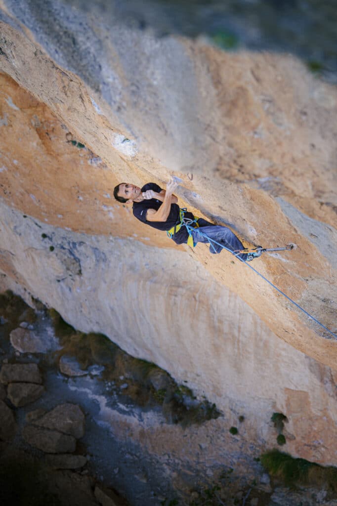 Driving to the world famous limestone crag of Siurana, in the heart of Catalunya, the El Pati Wall towers above the historic climbing area. In the middle of the limestone wall, the global testpiece La Rambla (9a+), the world’s second of the grade, can easily be seen.