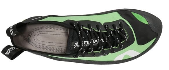 Ligeramente curvado provisto de la tecnología M4. Una combinación de parámetros que consigue sumar a un confort excepcional muchas de las cualidades de los pies de gato de altas prestaciones. Cuenta con una punta en un ángulo ligeramente más acentuado que el resto de la planta y es el Tenaya con mayor grado de respuesta al ancho de pie. Es el zapato perfecto para mejorar tu escalada con los pies y aumentar cada vez más tu conexión con la roca